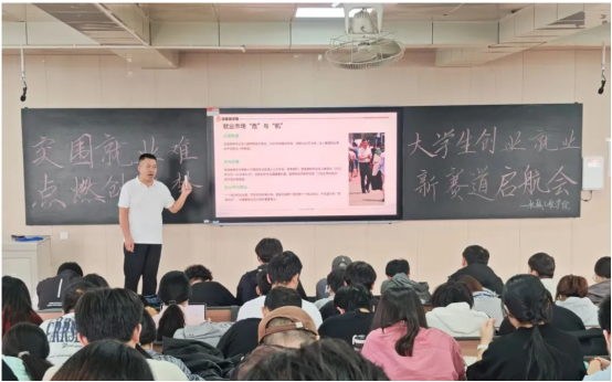 讲座开场,岳冰老师便直切要害,引导同学们跳出传统“找工作”的局限,树立“创造工作”的前沿思维。他强调,新时代大学生应敏锐捕捉社会需求,凭借专业知识与个人兴趣主动创造价值,从而开辟出全新的职业航道。