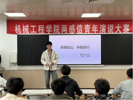 为扎实推进“感恩教育”与“知礼行孝”主题教育,进一步厚植感恩情怀,传承中华传统美德。10月16日,机械工程学院在3521教室举办2025年“两感信”青年演说大赛。