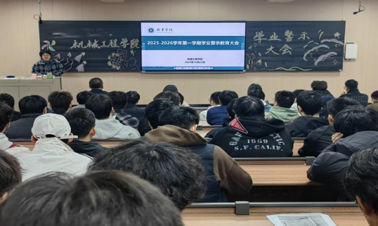 为推动学生主动高效学习,健全学业帮扶长效机制,10月22日,机械工程学院在3527教室召开2025-2026学年第一学期学业警示教育大会。大会以“警醒鞭策、精准帮扶”为核心,旨在引导学业成绩不佳的学生认清学业重要性,主动采取措施改善学习状况。学院党委书记、副院长赵晓华、学生工作办公室主任何岩龙及辅导员、教师代表出席会议。会议由副院长谢芳主持。