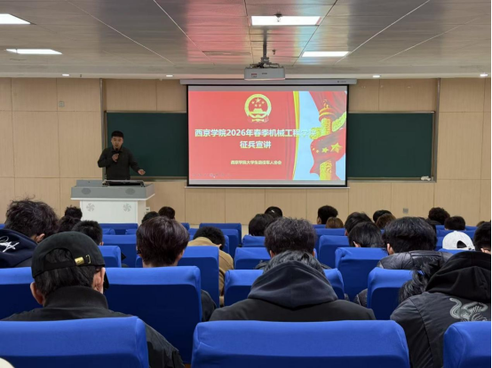 “天下兴亡,匹夫有责。”保家卫国,是每个公民的神圣职责,更是无上荣耀的使命担当。为积极响应国家征兵号召,点燃广大青年学生的爱国热情与参军报国之志,12月3日,机械工程学院在图书馆103报告厅举办2026年春季征兵政策宣讲会,邀请张量、张昊、余家钱三名退役大学生代表担任主讲,有意向参军的同学及各班级代表120余名学生参会。