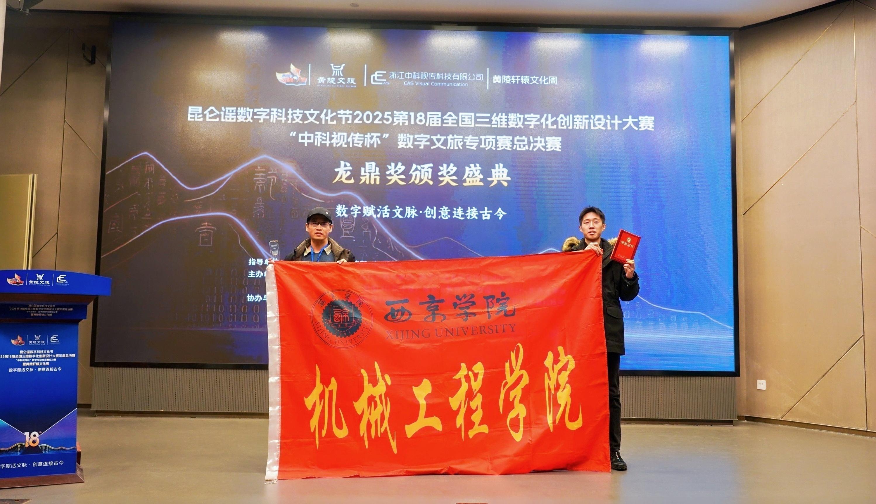 近日,2025年第18届全国三维数字化创新设计大赛“中科视传杯”数字文旅专项赛全国总决赛获奖名单公布。我校机械工程学院机器人工程专业研究生王顺程与工业设计专业本科生薛硕组成的“梨园小创客”团队,在指导老师王宏亮的带领下,凭借作品《临川四梦》荣获全国一等奖。