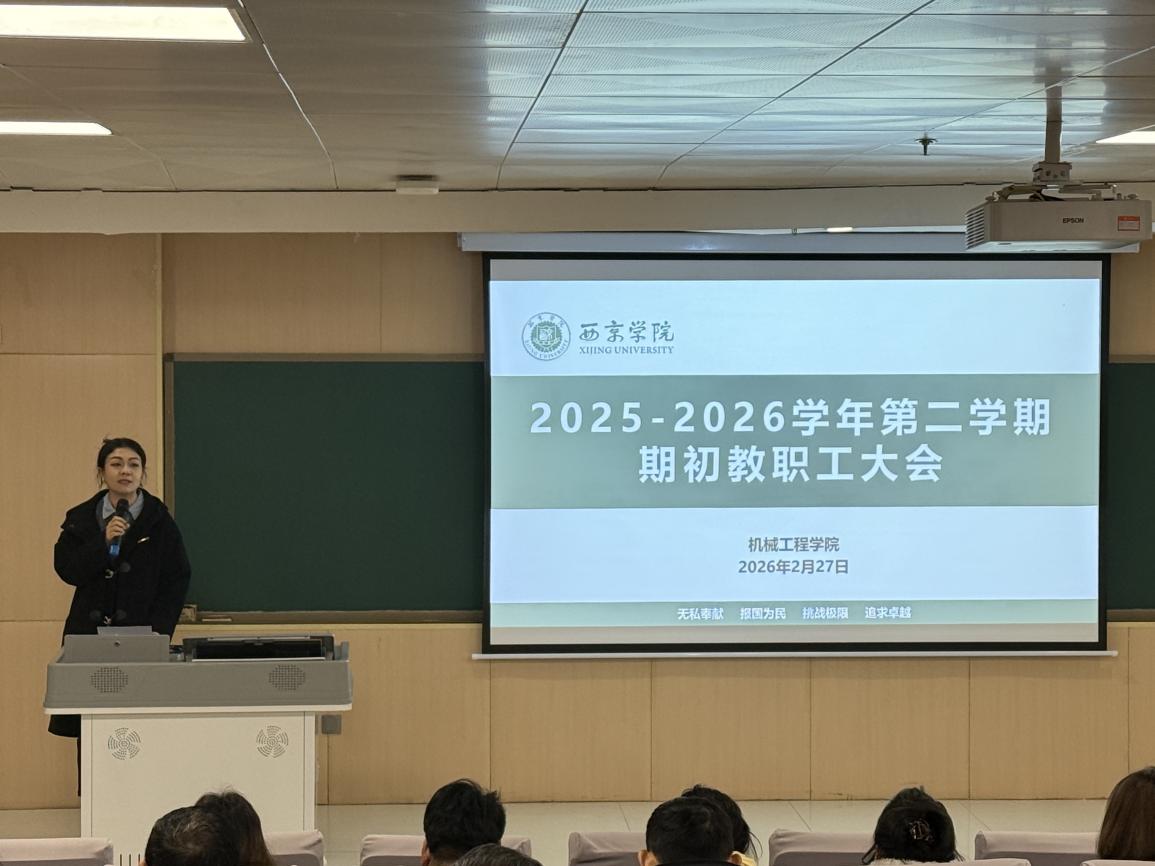 2026年是“十四五”规划与“十五五”规划衔接的关键年。为应对高等教育发展挑战,统一思想、明确方向,落实任芳校长在2025-2026学年第二学期期初教职工大会上的工作要求,确保新学期教学任务高质量完成,2月27日,机械工程学院在图书馆102报告厅召开全体教职工大会。院长张毅、党委书记赵晓华、学术院长张小龙、院长助理金晓雪、周亚男、宋宇及全体教职工共同为学院新学期发展出谋划策、凝聚力量。