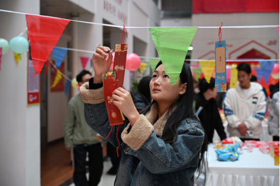 巧手制灯笼,点亮传承心。在DIY灯笼制作区,同学们围坐在桌子周边动手操作。从搭骨架、贴彩纸到装流苏、连灯饰,大家全神贯注,一丝不苟。随着一盏盏造型各异、寓意吉祥的灯笼逐渐成型,大家的脸上洋溢着自豪与喜悦。