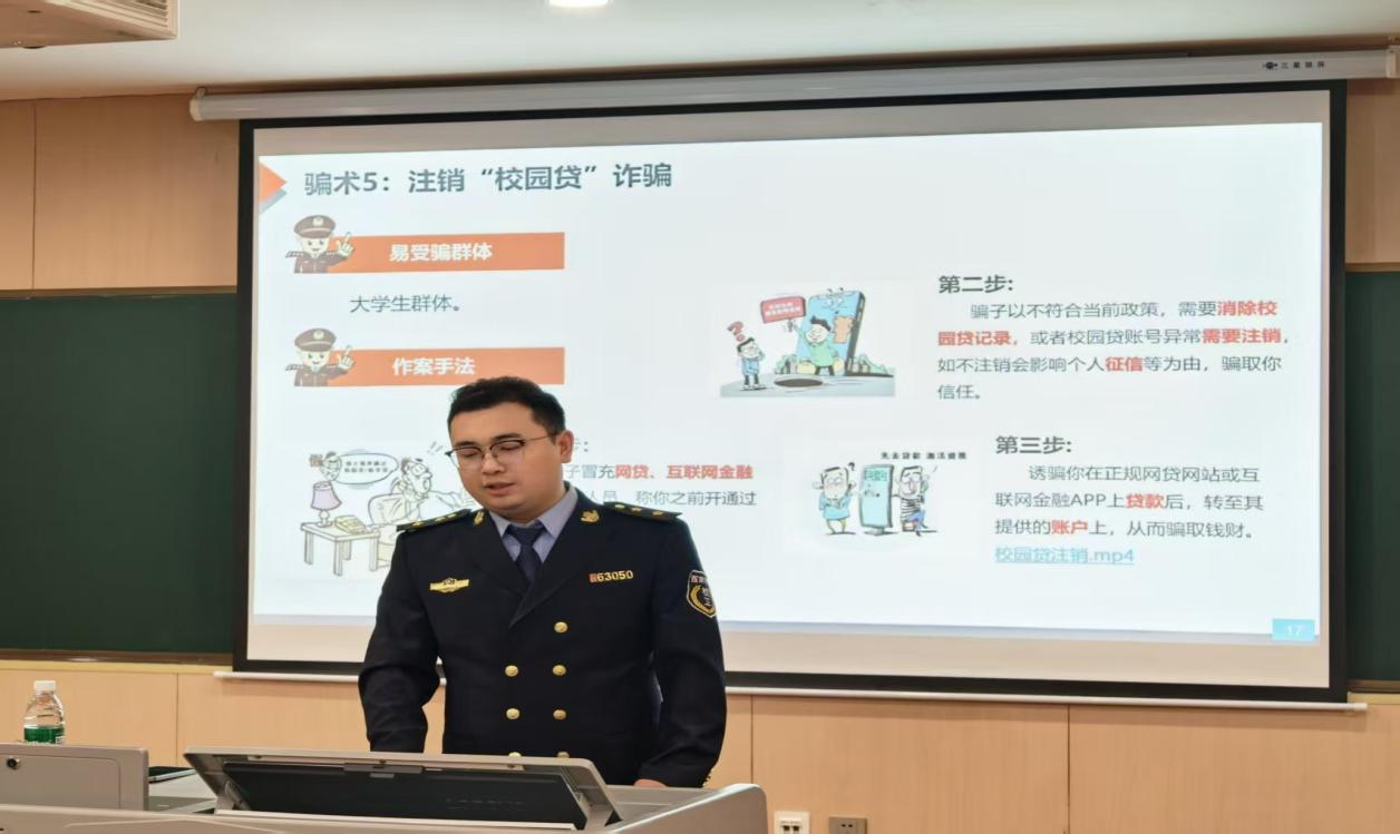 讲座中,马鑫老师结合当前高校电信诈骗案件高发态势,以真实案例为切入点,深入剖析了诈骗分子的作案手法与新型手段。他围绕大学生群体易遭遇的刷单返利、虚假投资理财、冒充客服退款、网络游戏虚假交易、冒充公检法等高发诈骗类型,通过剖析典型骗局,直观揭示了诈骗对个人财产、学业乃至家庭造成的严重危害,帮助同学们深刻认识到诈骗的隐蔽性与现实威胁。
