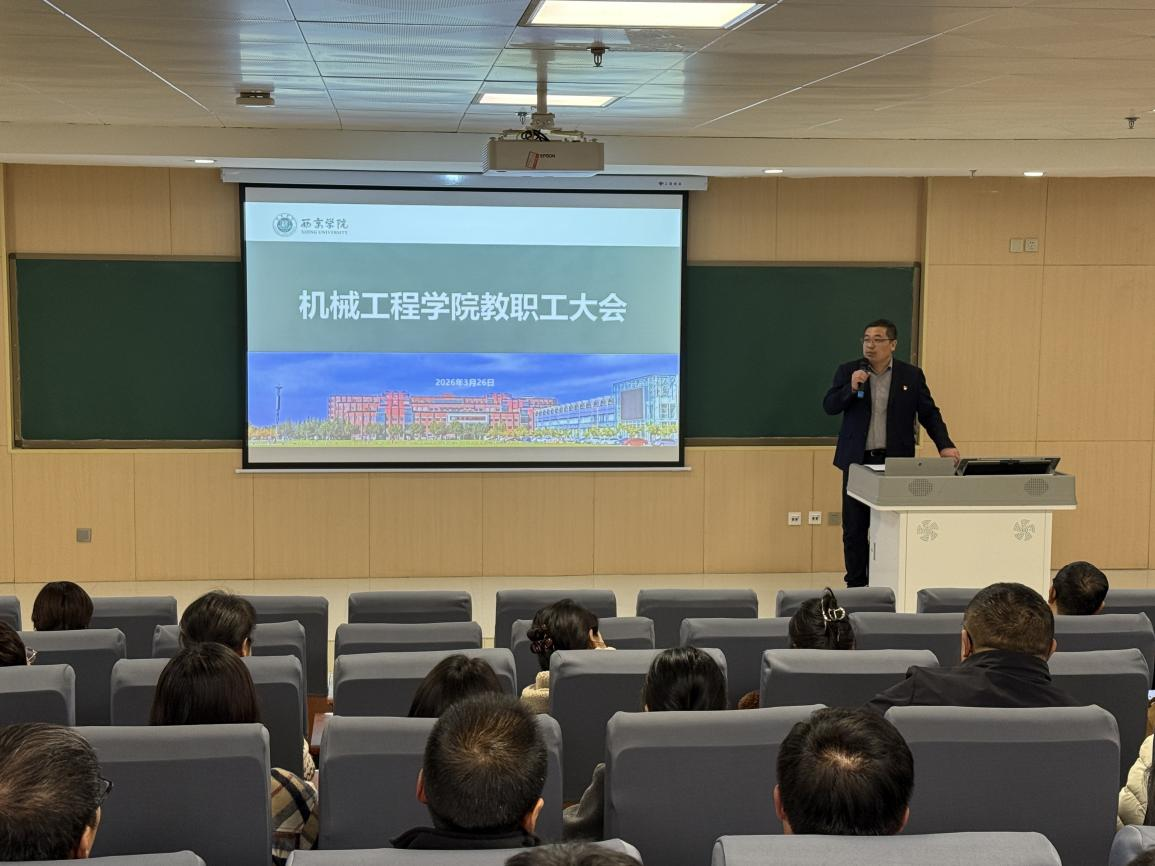 为进一步强化全院教职工规矩意识、筑牢思想根基、统一行动方向,3月26日,机械工程学院在图书馆101报告厅召开全院教职工大会。党委书记赵晓华带领全院教职工共同学习西京精神。